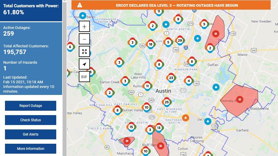 - Know how to report an outage and view the outage map. To report an outage, text OUT to 287846, To view the outage map if you have access to the internet, go to outagemap.austinenergy.com